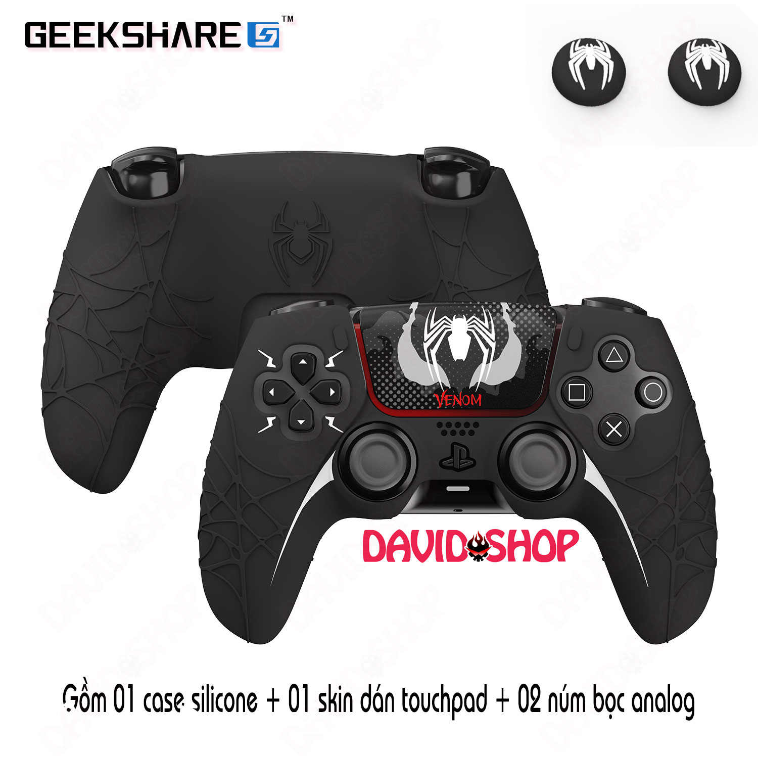 Bọc case silicone & núm bọc analog & skin touchpad Spider-Man (GeekShare) – tay cầm PS5 (DualSense)