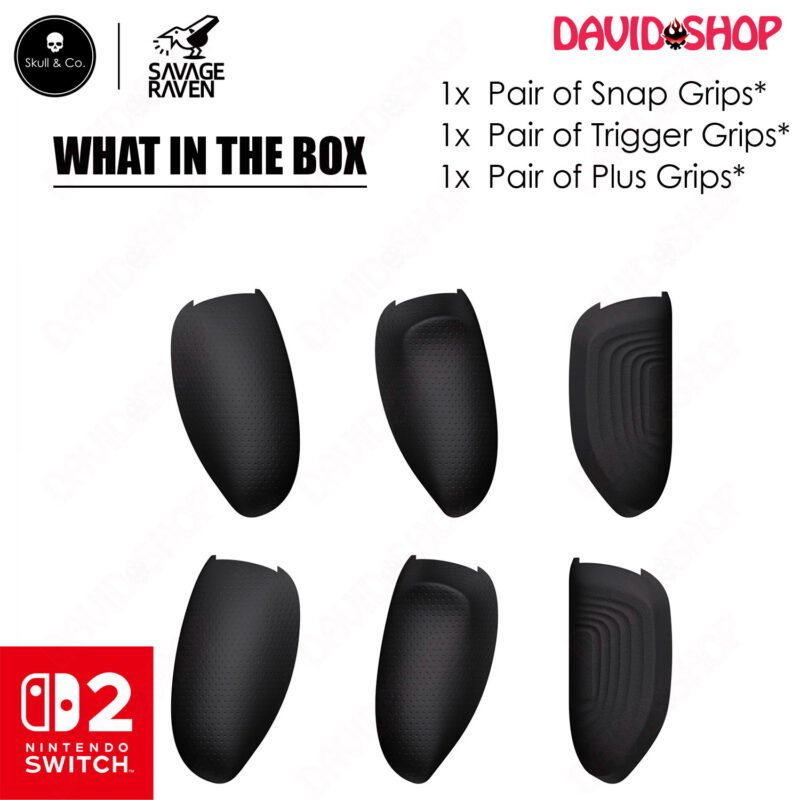 Bộ vỏ grip (gồm 3 cặp) dùng thay thế cho các mẫu ốp cùng hãng như FissionGrip / GripCase / NeoGrip / JoyGrip, tương thích với Nintendo Switch 2. Hàng chính hãng Savage Raven (Skull & Co.).