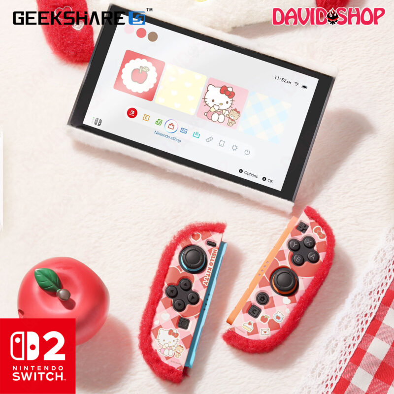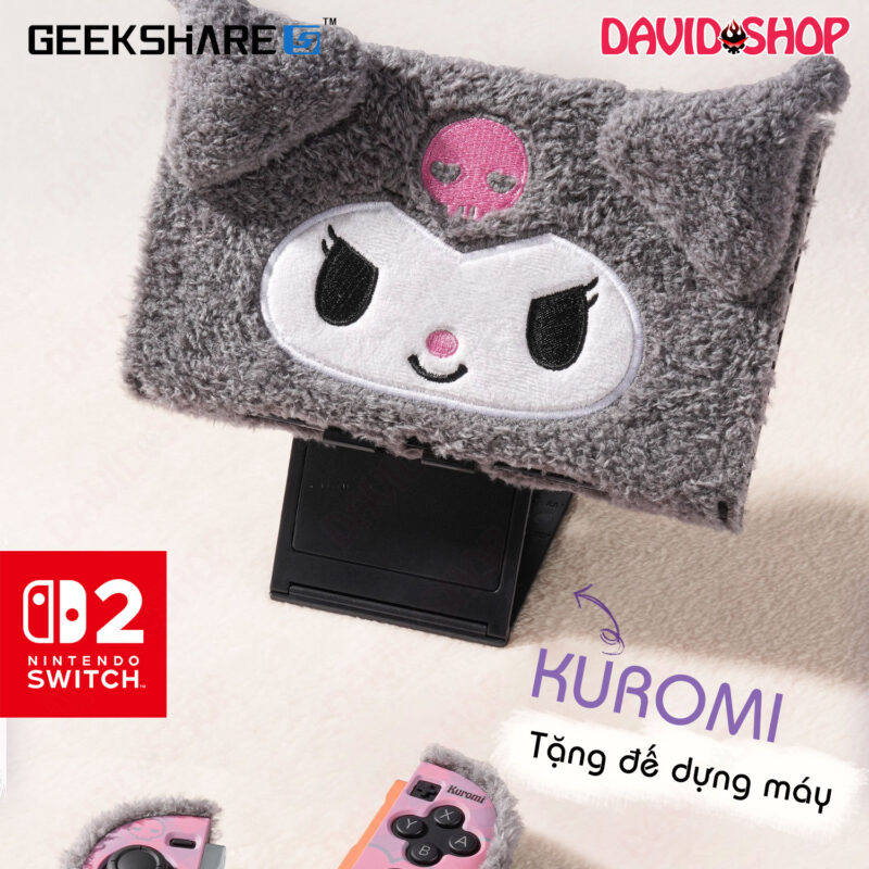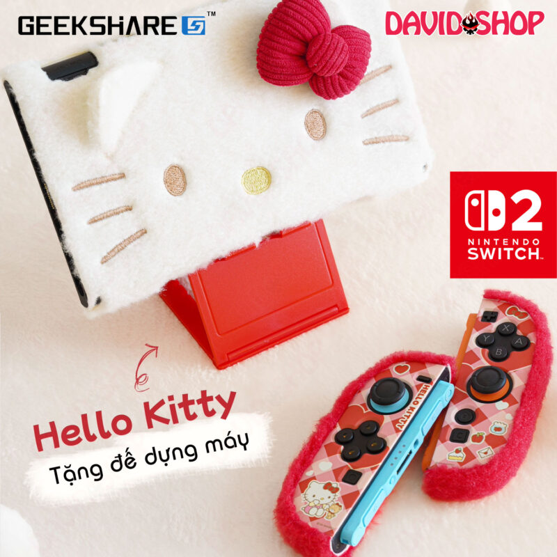 Bộ sản phẩm bao gồm ốp lưng & 02 bọc case Joy-Con 2 chủ đề Nhân Vật Sanrio Lông Mềm dành riêng cho máy chơi game Nintendo Switch 2, hàng cao cấp chính hãng GeekShare và bản quyền hình ảnh từ Sanrio Nhật Bản. Có tặng kèm đế dựng máy.