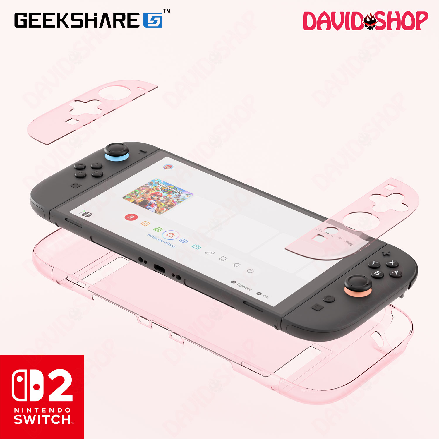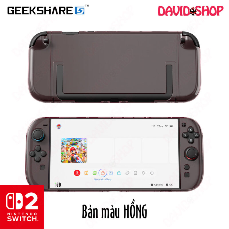 Bộ ốp lưng + Bọc case Joy-Con trong suốt có màu tuyệt đẹp và cao cấp của hãng GeekShare dùng cho máy chơi game Nintendo Switch 2. Có thể cho vào vừa dock zin.