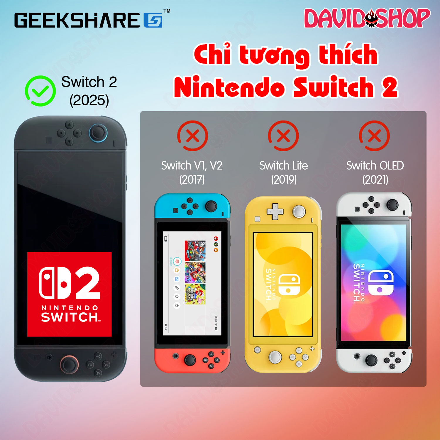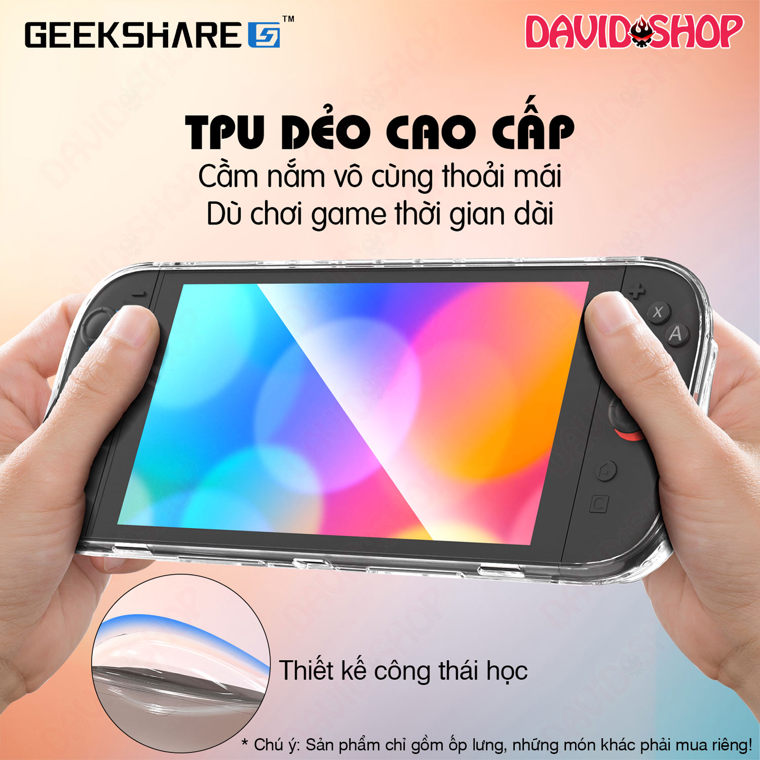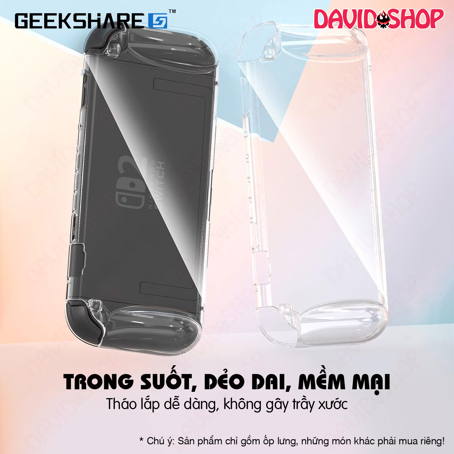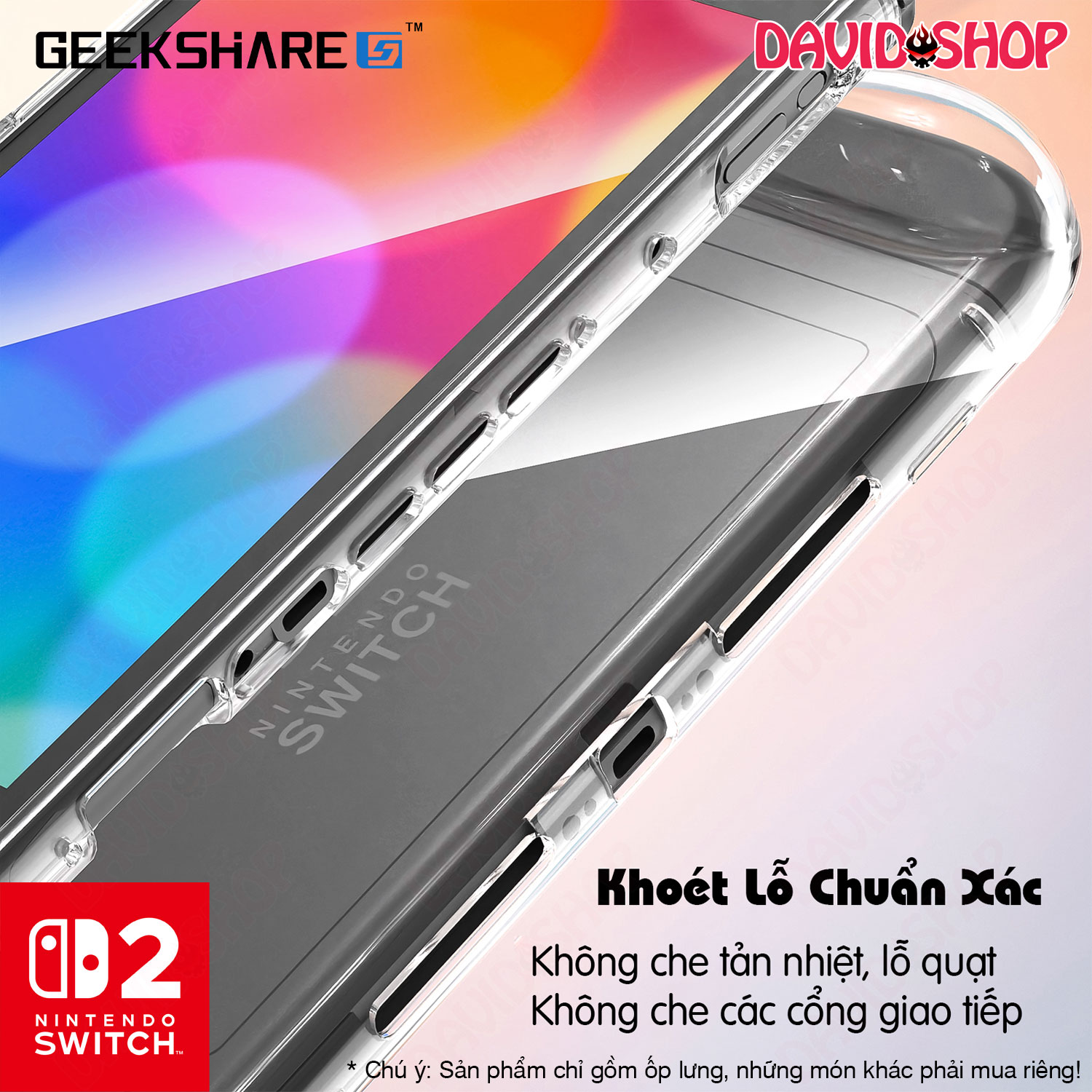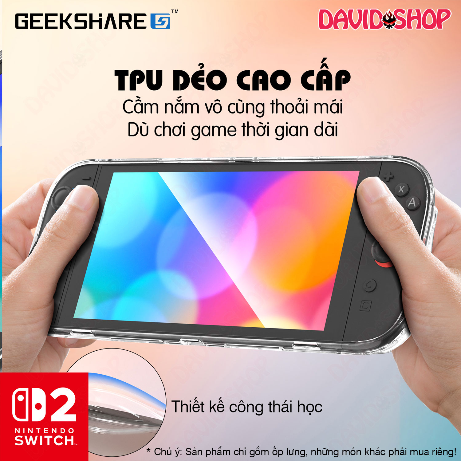 Ốp lưng trong suốt chất liệu TPU dẻo cao cấp của hãng GeekShare dùng cho máy chơi game Nintendo Switch 2. Có thể cho vào vừa dock zin.