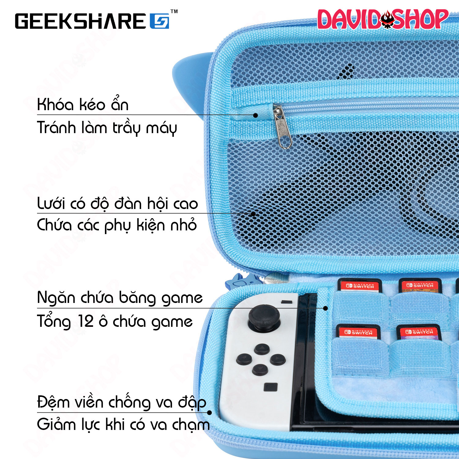 Túi bảo vệ máy Tiệc Cá Mập (Shark Party) kèm dây đeo tay chính hãng GeekShare – Nintendo Switch 2